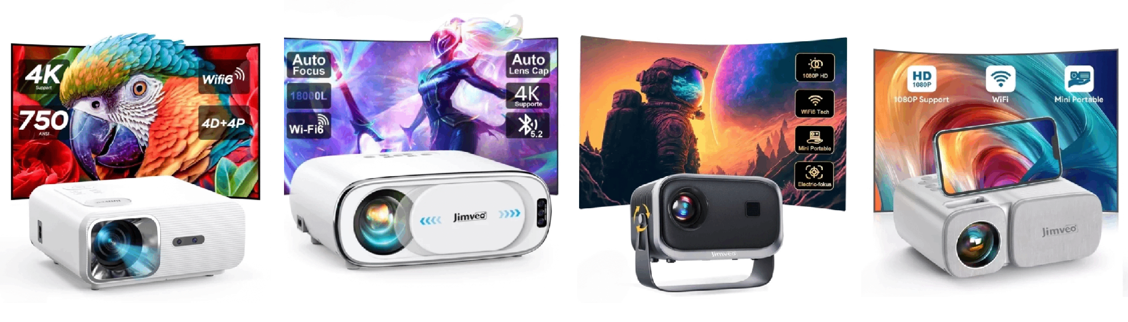 ویدیو پروژکتور برند Jimveo مدل J61 با کیفیت 4k،فوکوس خودکار۲۳٬۵۰۰٬۰۰۰ 4%