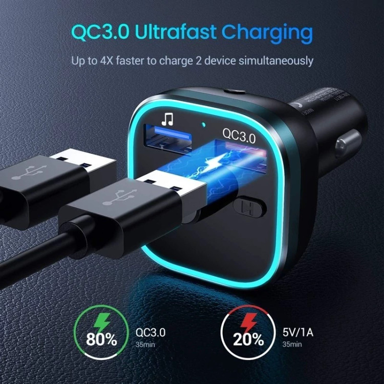دو پورت قدرتمند USB امکان شارژ همزمان دو دستگاه را فراهم میکند؛ یکی با فناوری QC 3.0 که شارژی تا چهار برابر سریعتر از حالت معمول دارد، و دیگری برای شارژ استاندارد یا پخش موسیقی از فلش USB طراحی شده است.