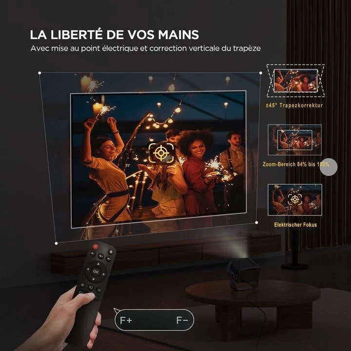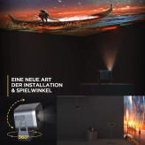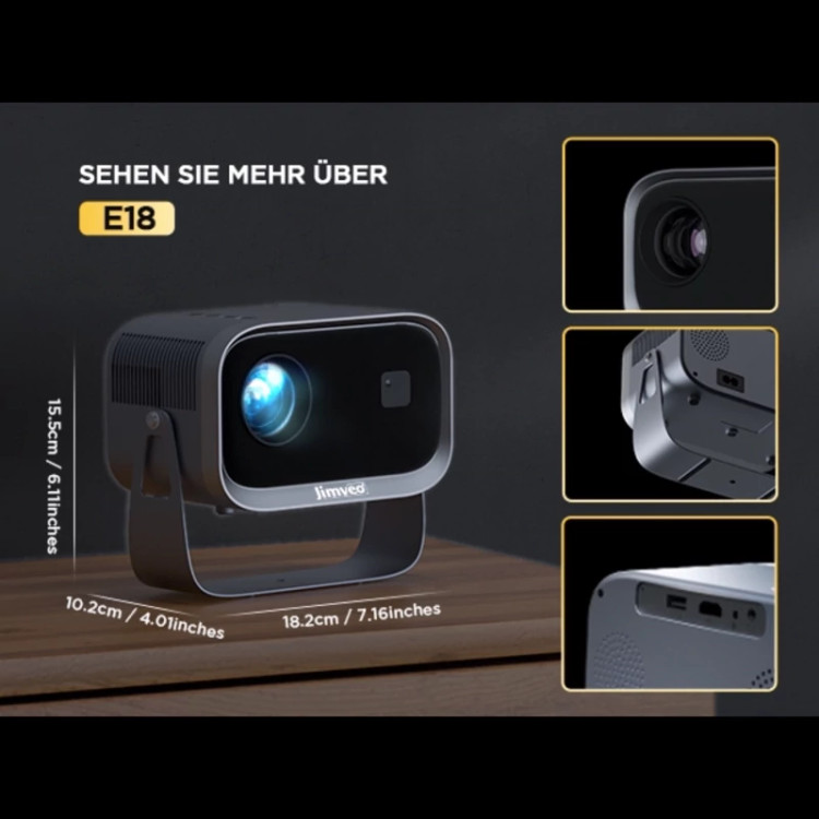 پروژکتور Jimveo مدل E18 یک انتخاب ایدهآل برای ایجاد فضای سینمای خانگی مدرن (Heimkino) است. این دستگاه با طراحی دقیق و یکپارچه، امکان تنظیم زاویه 360 درجه را فراهم میکند تا بتوانید از هر جهت، حتی هنگام دراز کشیدن در اتاق خواب، تجربهای جذاب از «سینمای سقفی» داشته باشید.