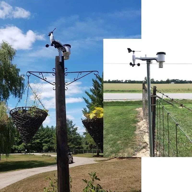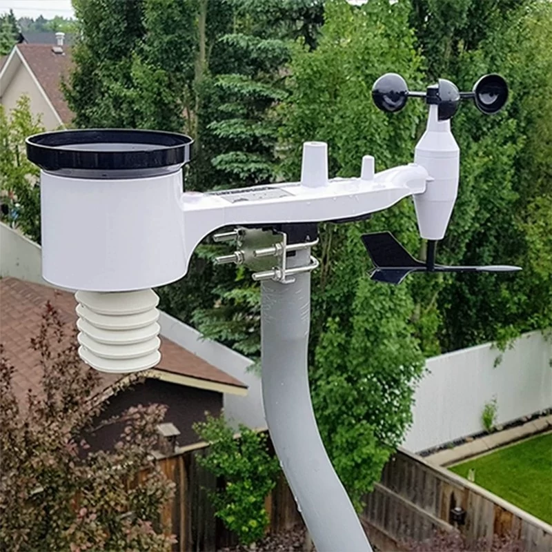 🌤 آرایهی قدرتمند ۷ در ۱ فضای باز شامل بادنما، بادسنج، سنسور UV و نور خورشید، حسگر دما و رطوبت، بارانسنج، تراز حبابی و جمعکننده خورشیدی است که دادهها را هر ۱۶ ثانیه بهروزرسانی میکند.