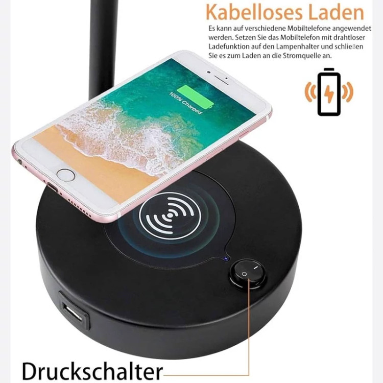 چراغ رومیزی شارژ بی سیم 10 واتی چراغ خواب، شارژر