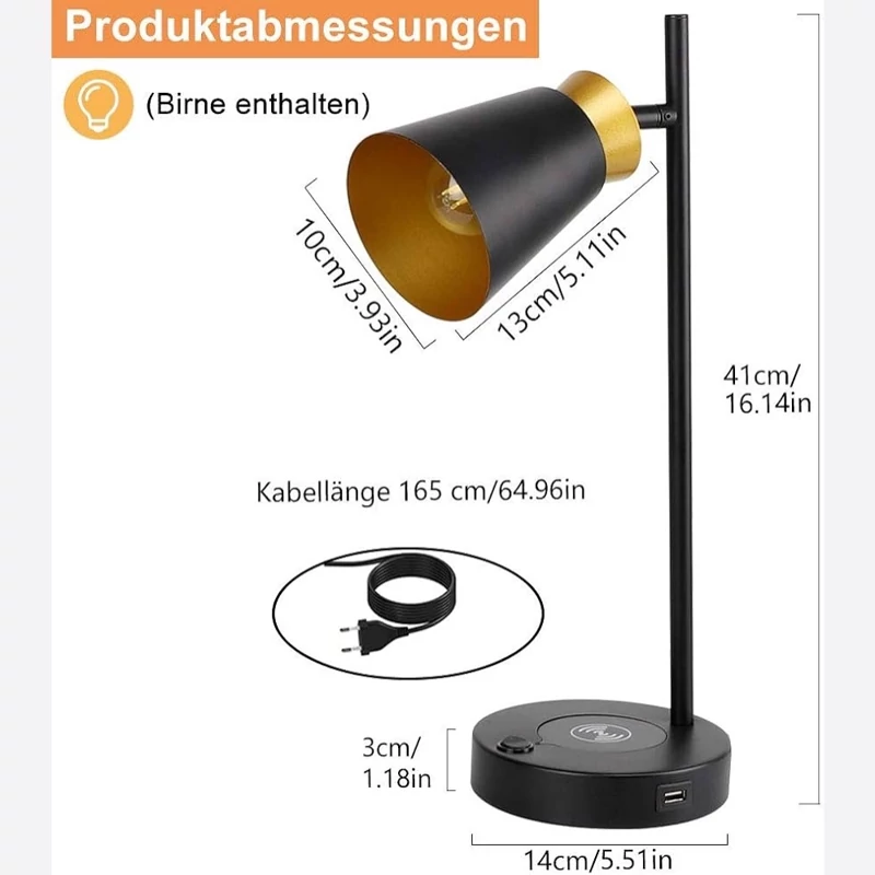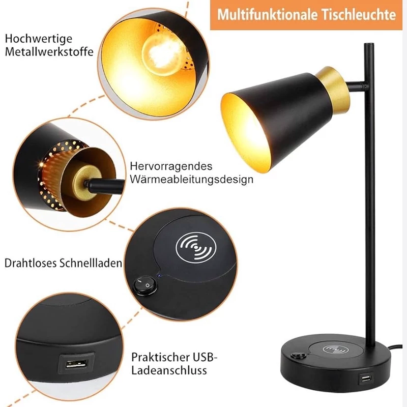 چراغ رومیزی شارژ بی سیم 10 واتی چراغ خواب، شارژر