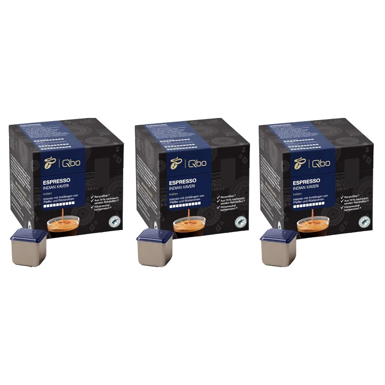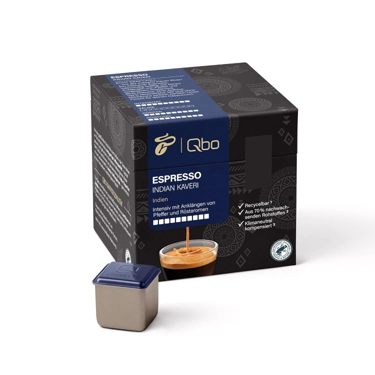 کپسول قهوه ممتاز Tchibo Qbo – اسپرسو Indian Kaveri، بسته ۲۷ عددی (شدت ۱۰/۱۰، طعمی شدید و تند)