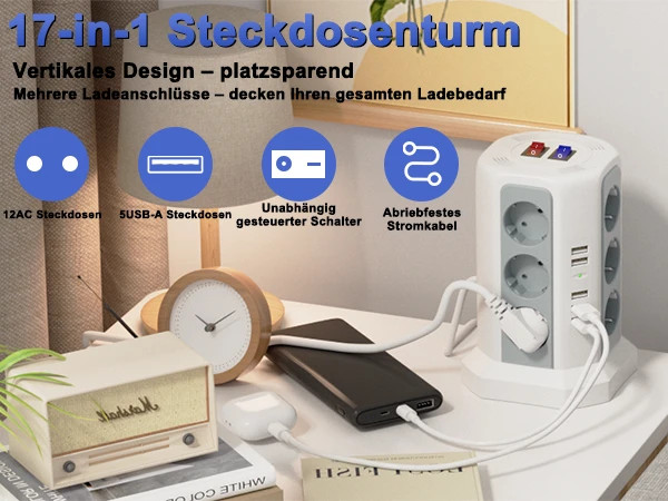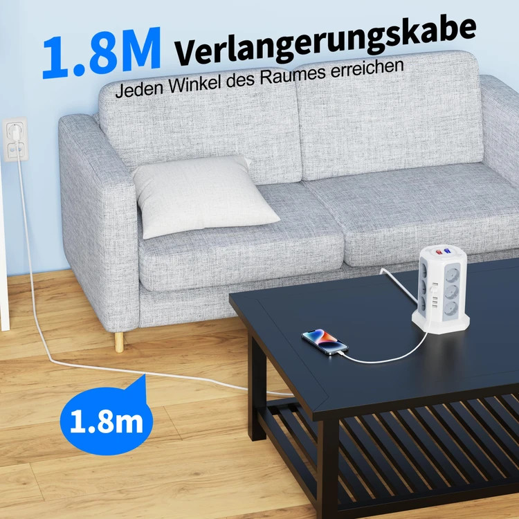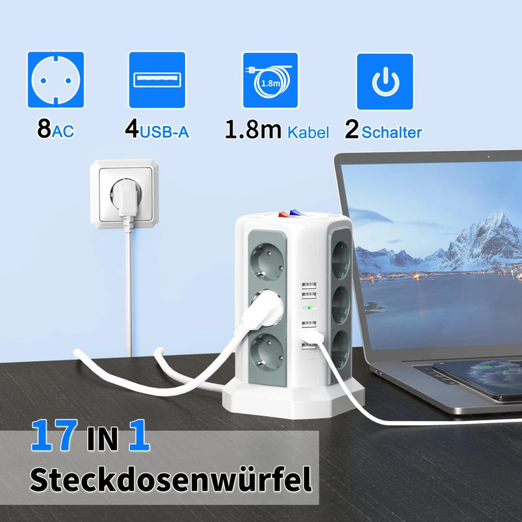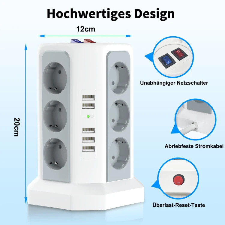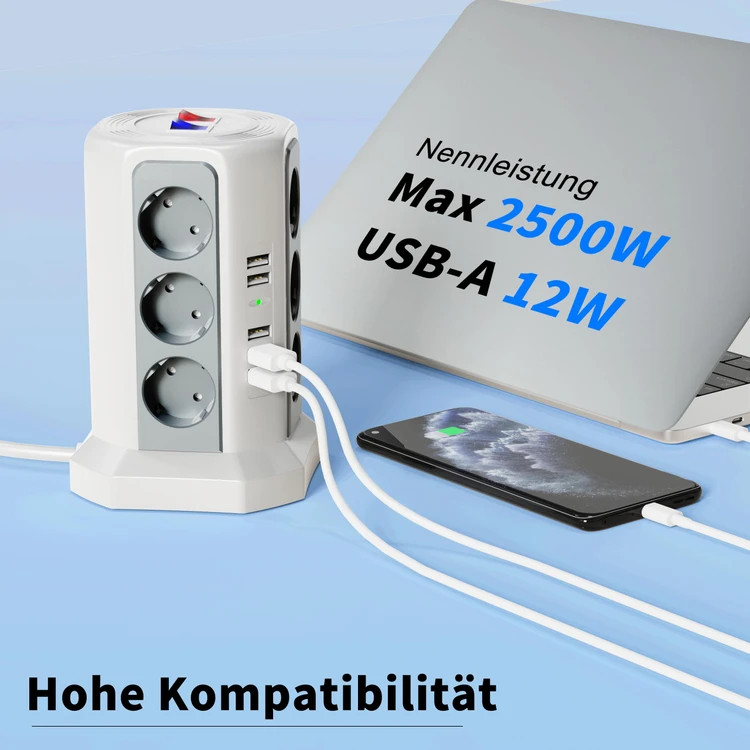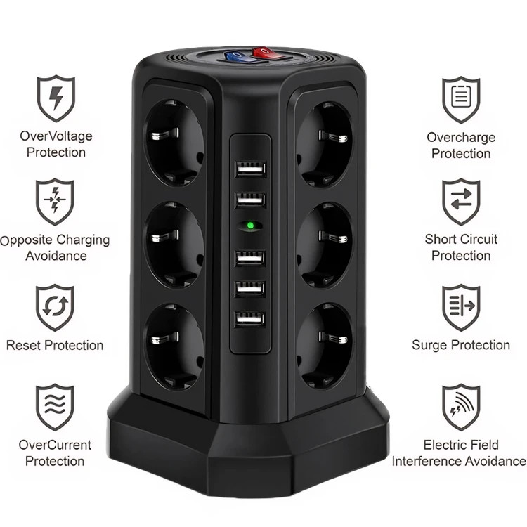 چندراهی برق KUTUMAI قدرت ۱۲ پریز و ۵ پورت USB در یک دستگاه