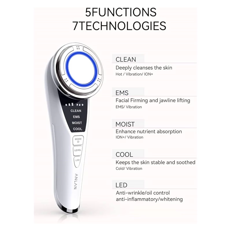 ماساژور صورت چندمنظوره ANLAN 5 در 1 – پاکسازی، لیفت و جوانسازی پوست
