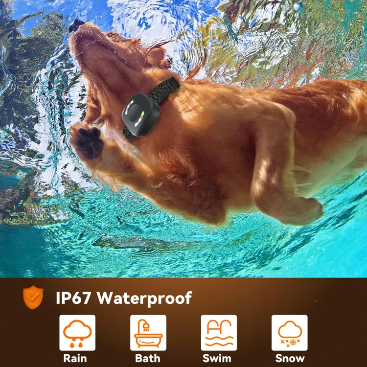 قلاده ضد آب بوده و سگ میتواند با خیال راحت در باران، برف، استخر یا دریا بازی کند.