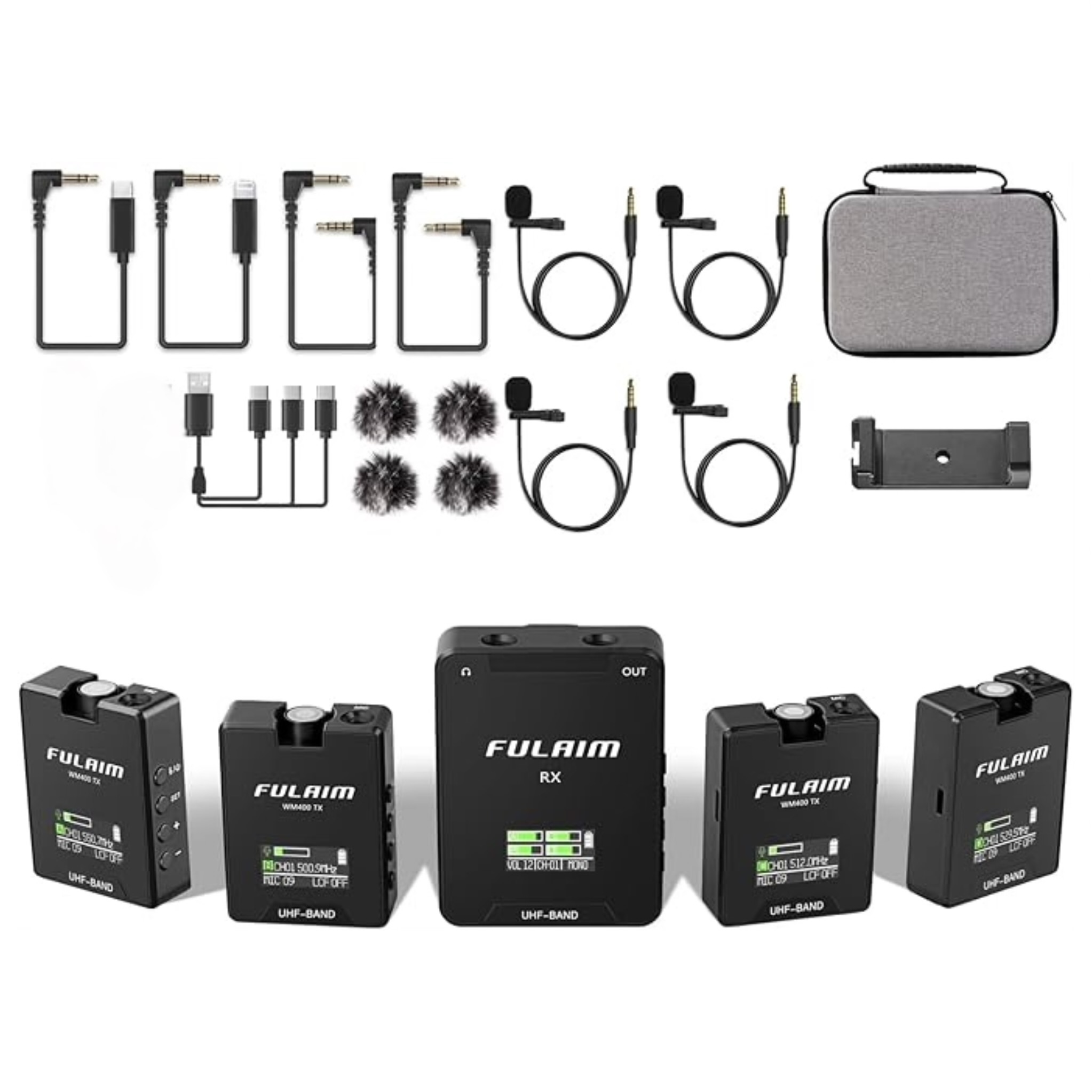 میکروفون یقهای بیسیم FULAIM WM400 UHF با 4 فرستنده قابل شارژ