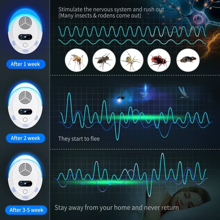 امواج اولتراسونیک این دستگاه برای انسان، کودکان و حیوانات خانگی قابل شنیدن نیست و کاملاً بیخطر است.