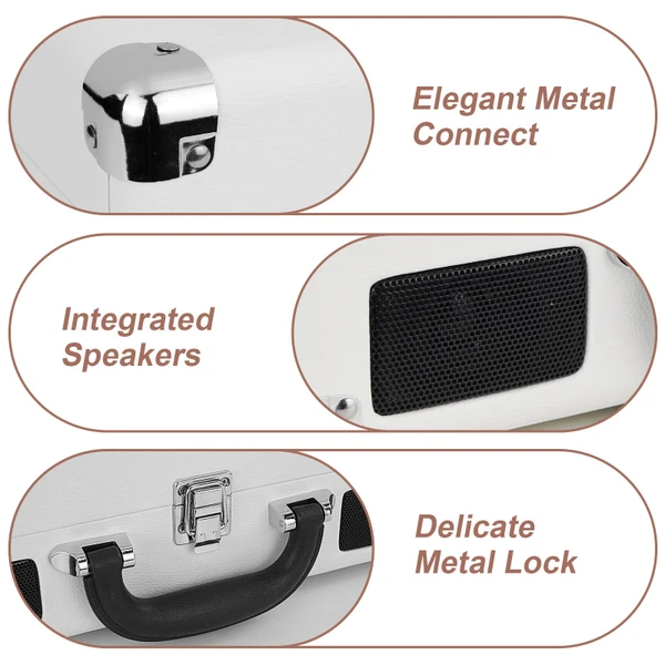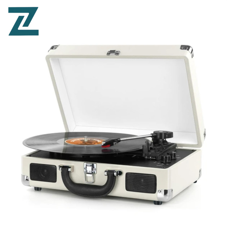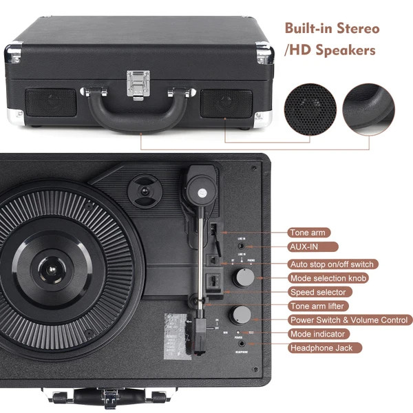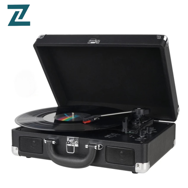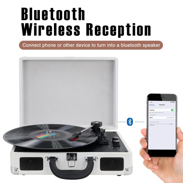 گرامافون وینیل چمدانی قابل حمل بلوتوثی با بلندگوهای داخلی، شامل قلم اضافی، خروجی RCA، ورودی AUX