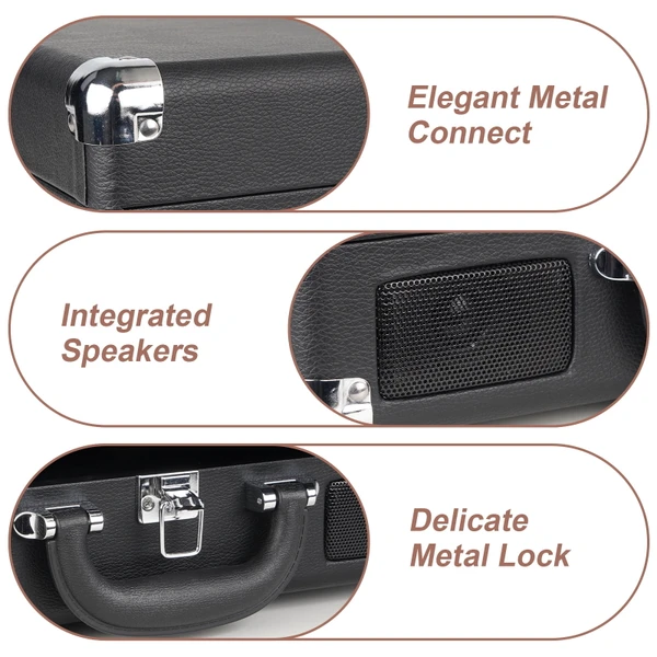 ♦【شیک و قابل حمل】 با ترکیبی از طراحی رترو و مدرن، بستهای فلزی کرومی نفیس و ظاهر بافتدار نفیس، پخشکننده وینیل با سبک رترو بهترین انتخاب برای کلکسیونرها است. طراحی چمدانی قابل حمل با روکش بیرونی چرم مشکی کلاسیک برای اتاق نشیمن، اتاق خواب، دفتر کار عالی است.