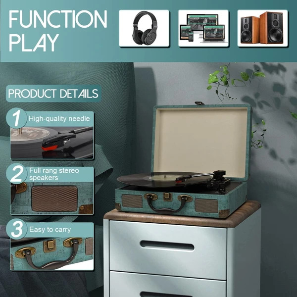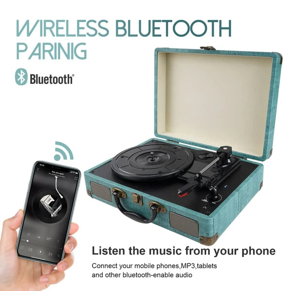 ♦【پخشکننده صفحه چمدانی قدیمی】 چمدان قدیمی با دسته حمل آسان، طراحی شیک چمدانی، میتوانید قاب را ببندید و از ورود گرد و غبار جلوگیری کنید یا فقط قفل را ببندید و مانند یک چمدان کوچک آن را بردارید و به جای دیگری ببرید. این گرامافون با بلوتوث دارای نمای بیرونی بافتدار زیبا است و برای هر محیطی مناسب است.