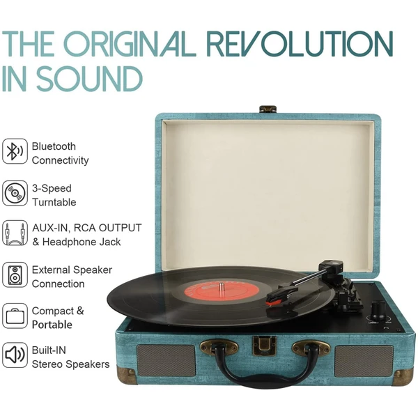 گرامافون وینل چمدانی بلوتوثی با بلندگوی استریو قابل حمل