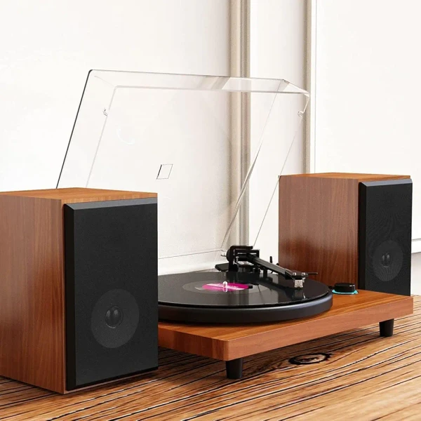 اتصال بلوتوث: گرامافون با عملکرد بلوتوث بیسیم، پخش موسیقیهای ارزشمند از دستگاههای خارجی مانند تلفن همراه، لپتاپ و سایر دستگاههای بلوتوث را پشتیبانی میکند.
