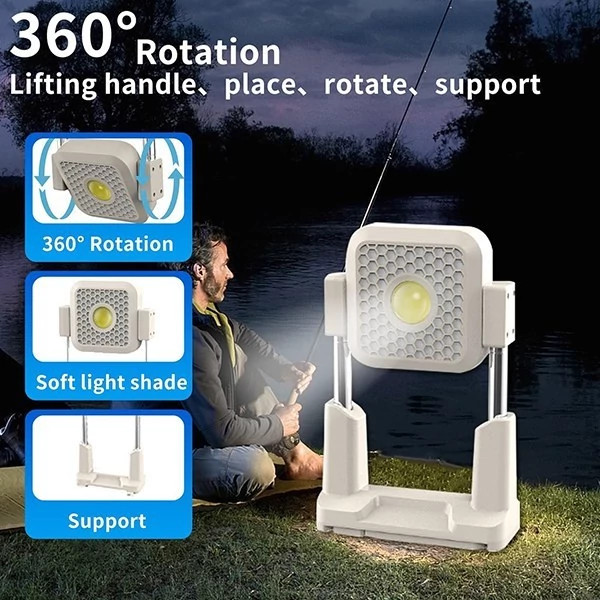 🏕 پایه قابل تنظیم و قلاب حمل: چرخش 360 درجه، قابل استفاده روی زمین، میز یا آویزان