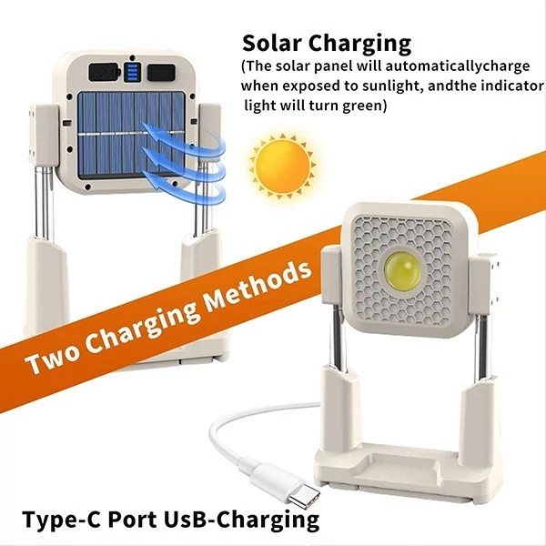 🔋 دو روش شارژ: کابل Type-C یا پنل خورشیدی با راندمان بالا