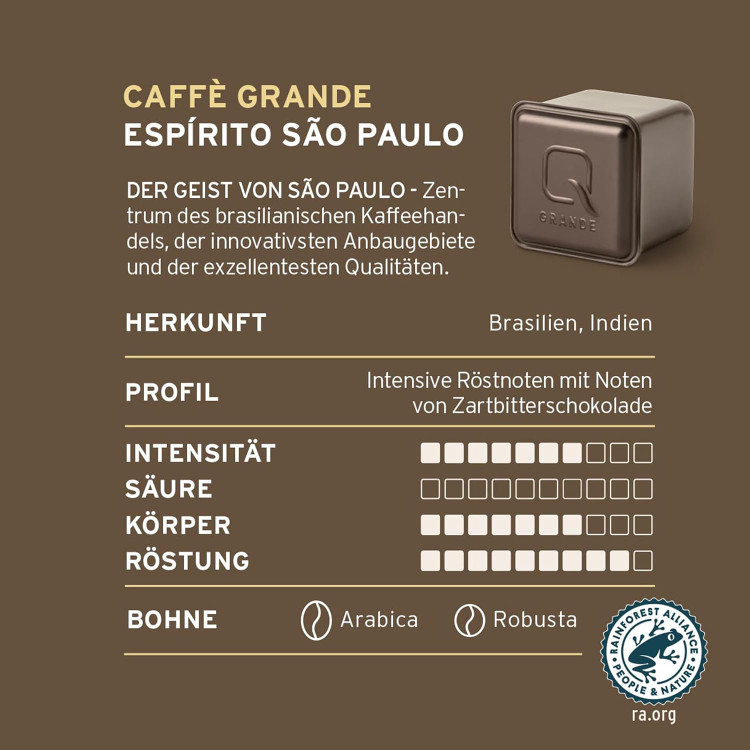هر بسته شامل ۲۱۶ کپسول قهوه (۸ بسته ۲۷ عددی) است که بهترین کیفیت قهوه گراند اسپریتو سائوپائولو را برای دستگاه Qbo شما فراهم میکند.