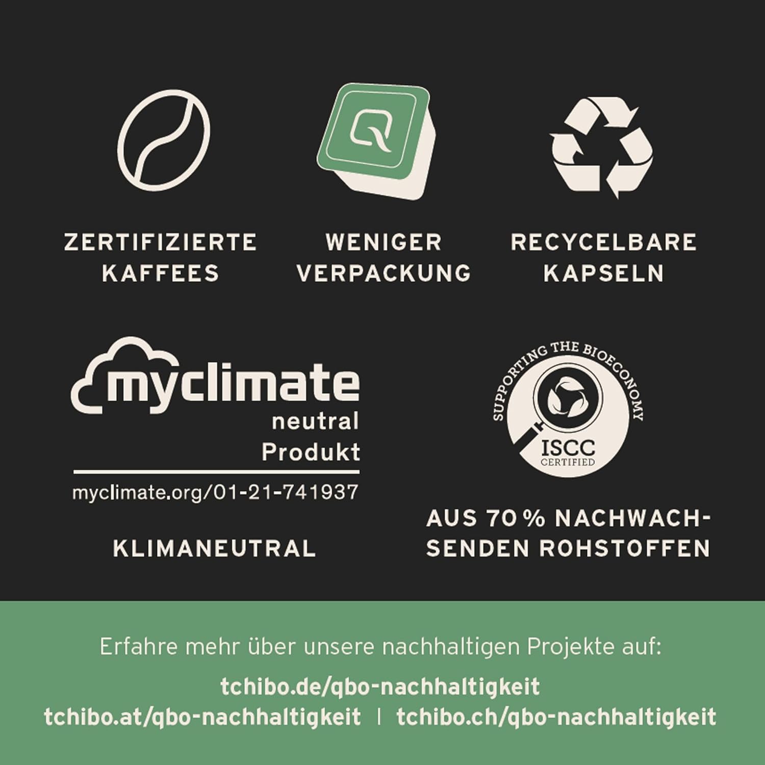 با کپسولهای Qbo Tchibo، از قهوه ۱۰۰٪ پایدار و دارای گواهینامه Rainforest Alliance لذت ببرید.