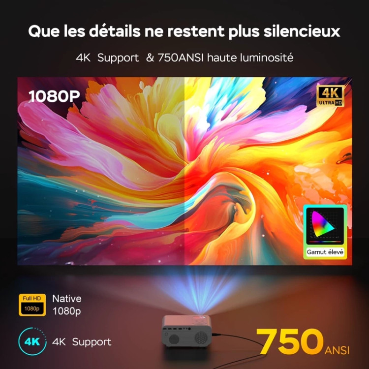 ویدیو پروژکتور برند Jimveo مدل J61 با کیفیت 4k،فوکوس خودکار