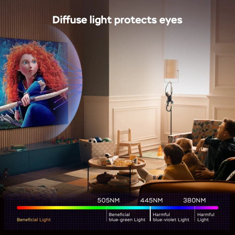 این ویژگیها تصاویر را با جزئیات دقیق و بافت زنده نمایش میدهند و امکان پخش تصویر تا 300 اینچ را فراهم میکنند، تجربهای مشابه تلویزیون 29–55 اینچ در خانه شما.