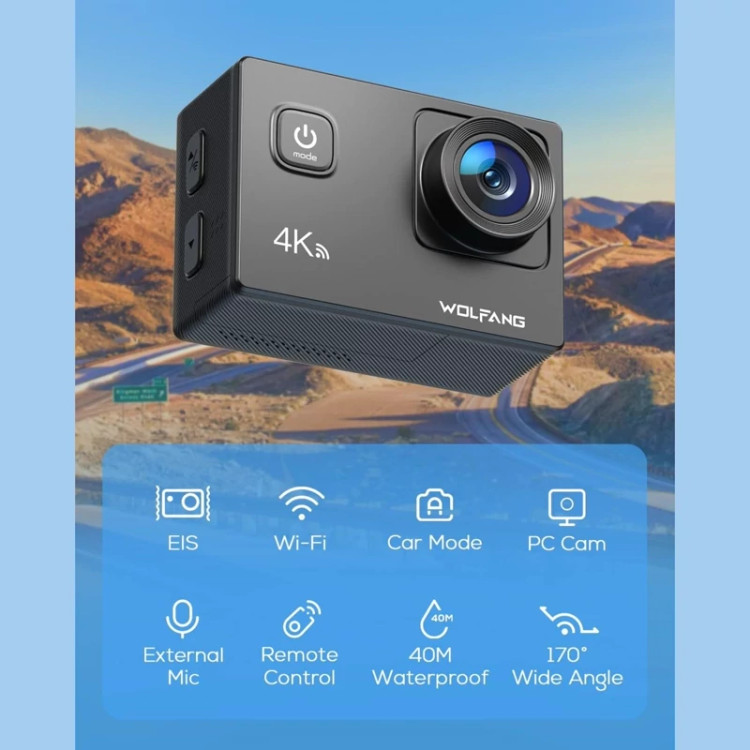 🌟 دوربین ورزشی WOLFANG GA100 – ضبط لحظههای شفاف و رنگارنگ در هر ماجراجویی