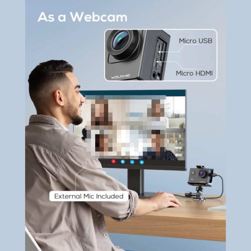 دوربین اکشن ورزشی 4K برند WOLFANG مدل GA100