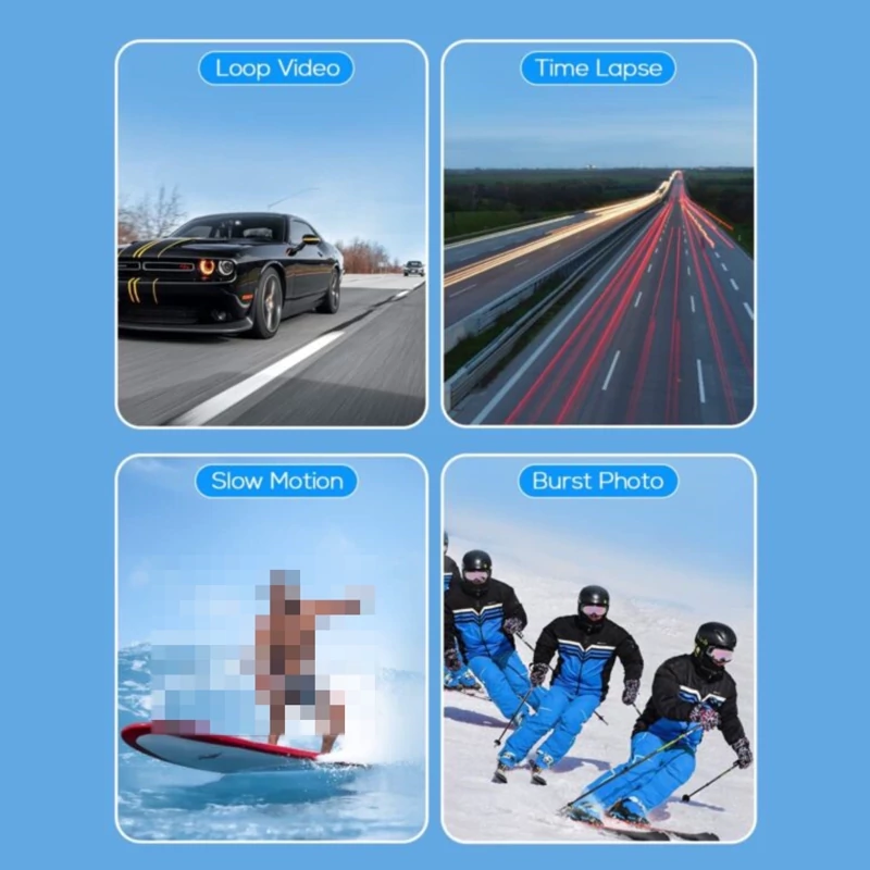 دوربین ورزشی GA100 با وضوح اصلی 4K/30FPS تصاویر بسیار شفاف ثبت میکند و با فعال کردن EIS میتوانید از رزولوشنهای 2.7K/30FPS، 1080P/60FPS، 720P/120FPS و دیگر کیفیتهای بالا بهره ببرید.