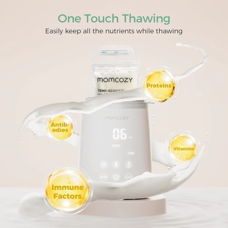 با انتخاب نوع شیر، جنس شیشه و حجم، دستگاه دما را بهطور خودکار تنظیم میکند تا شیر تا حد ممکن به دمای طبیعی شیر مادر برسد.