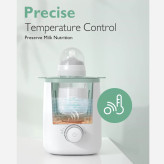 وارمر شیشه شیر Momcozy Nutri با فناوری گرمکردن ملایم در حمام آب، از داغ شدن بیشازحد جلوگیری کرده و تمام ارزش غذایی شیر مادر را حفظ میکند.