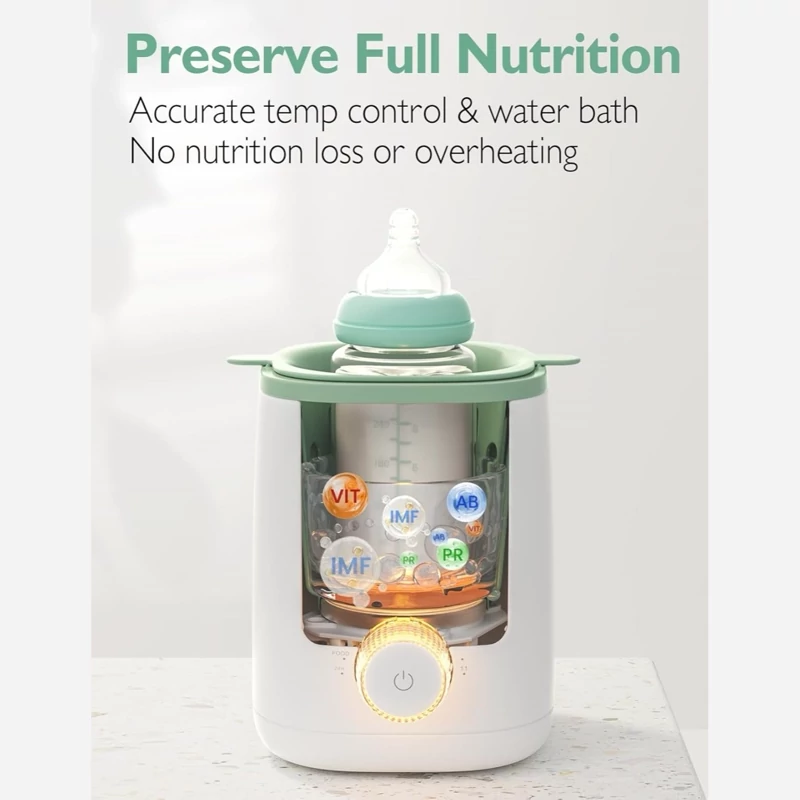 وارمر شیشه شیر Momcozy Nutri با فناوری گرمکردن ملایم در حمام آب، از داغ شدن بیشازحد جلوگیری کرده و تمام ارزش غذایی شیر مادر را حفظ میکند.