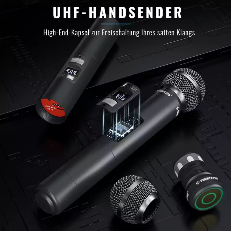 بدنه هر دو میکروفون و گیرنده کاملاً فلزی و بسیار مستحکم است. میکروفونهای دستی مجهز به کپسول کاردیویید داینامیک هستند که صدایی شفاف، پرقدرت و دقیق ارائه میدهند و نویز محیط را به حداقل میرسانند.