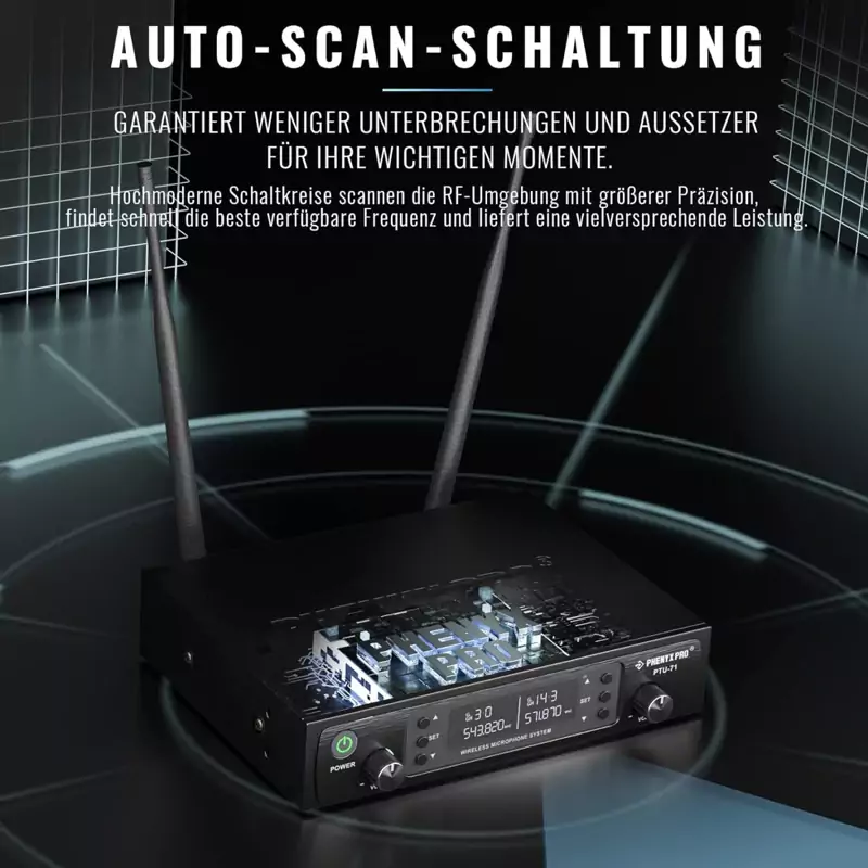 سیستم بیسیم دوگانه Phenyx Pro دارای قابلیت Auto Scan است و بهطور هوشمند کانالهایی با کمترین میزان نویز را برای اتصال انتخاب میکند.