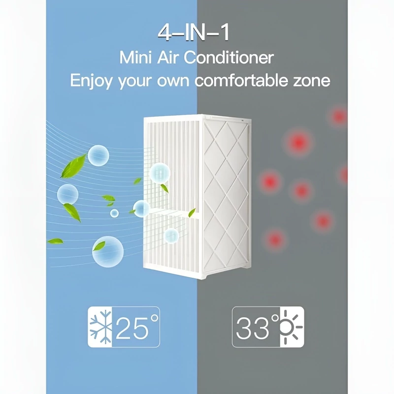 ❄ خنکای دلپذیر، هر جا که باشید با این کولر قابل حمل، گرمای تابستان دیگر غافلگیرتان نمیکند. طراحی آن با الهام از تغییرات طبیعی چهار فصل، دمایی متعادل و هوایی تازه را درست در اطراف شما ایجاد میکند. فقط کافی است مخزن را با آب یا آب یخ پر کنید تا دستگاه با فناوری خنکسازی پیشرفته، نسیمی لطیف و خنک را به جریان بیندازد؛ نسیمی که هم پوستتان را خنک میکند و هم نفسهایتان را تازه. همه اینها با مصرف کم انرژی و راندمانی بالا انجام میشود.
